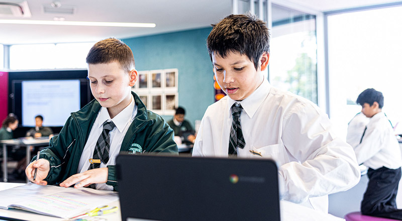 Boys learning in class at Good Shepherd Catholic Primary Plumpton